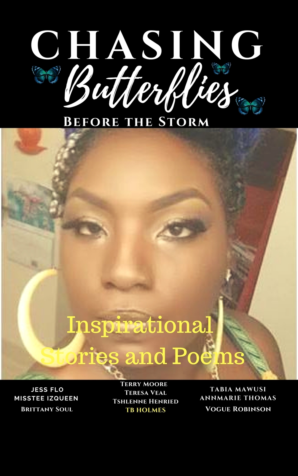 Chasing Butterflies Before the Storm is a collection of stories compiled by, featuring, bestselling author and novelist TB Holmes, Kelli Byrd, Donna M Jones, Jessica LeeAnn and award winning poet Terry Moore and other great writers and poets of the 21st century; Collectively they tell stories of the everyday life, (Love, Struggle and Hope). The poems are heartfelt, relevant, universal and timeless. These stories are a reflection of life and the celebration of the good, in addition to the struggles and challenges that people experience. Life is struggles can feel like stormy weather. These stories are road maps for people searching for their purpose, love and true happiness.